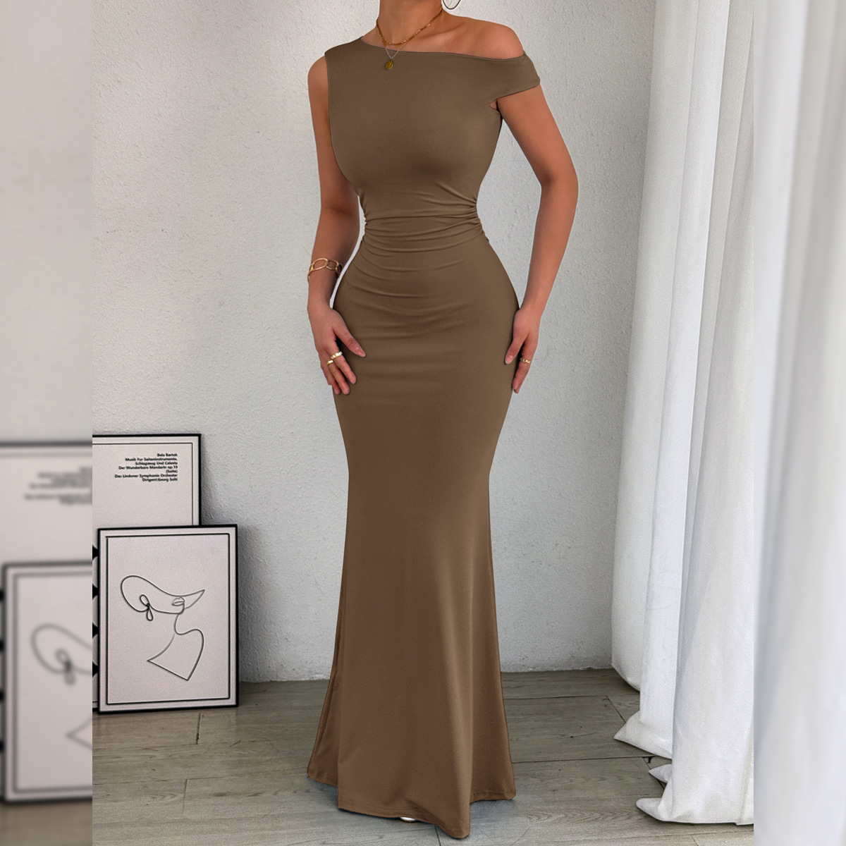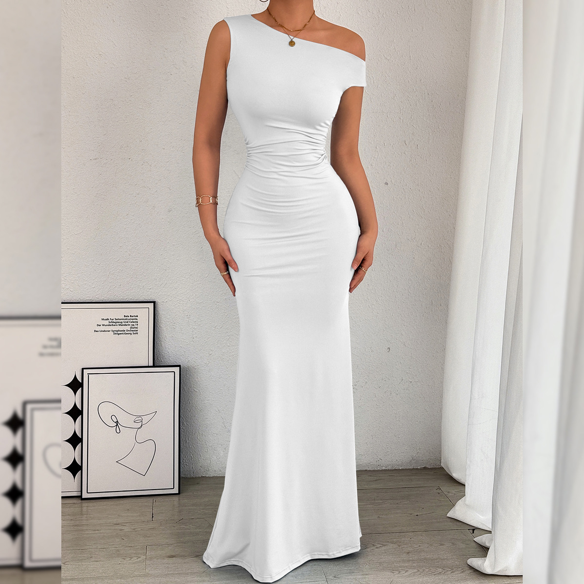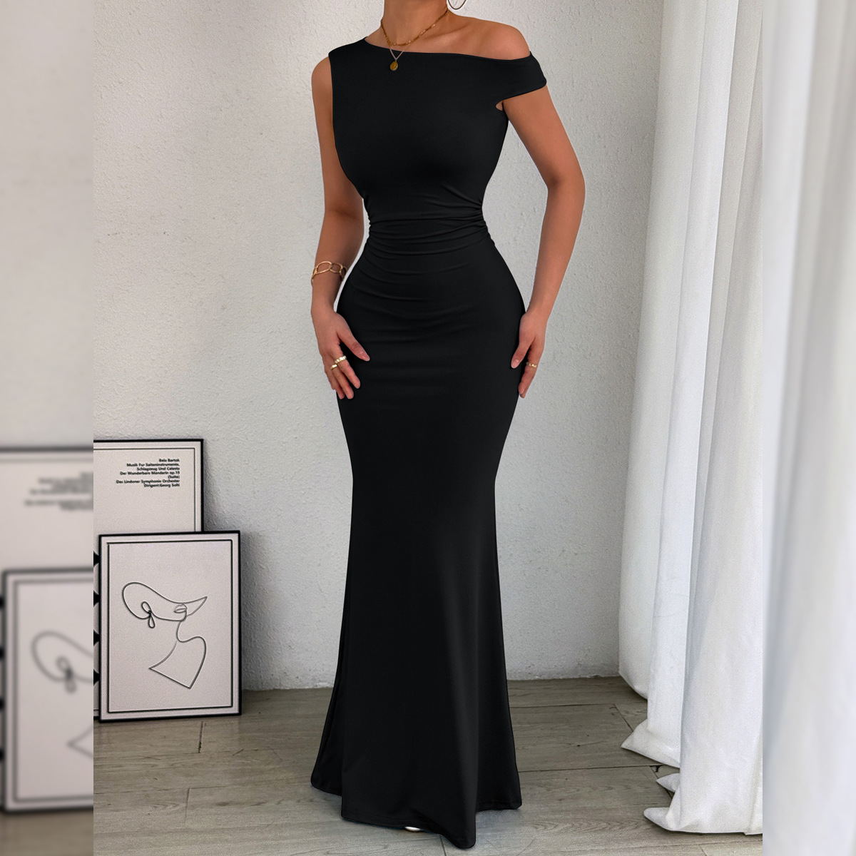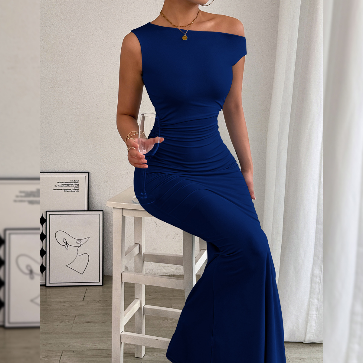 Hot Off-the-shoulder Waist Pleated Sleeveless Sexy Dress