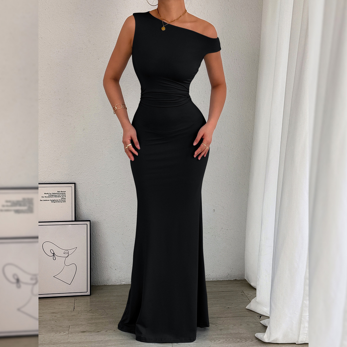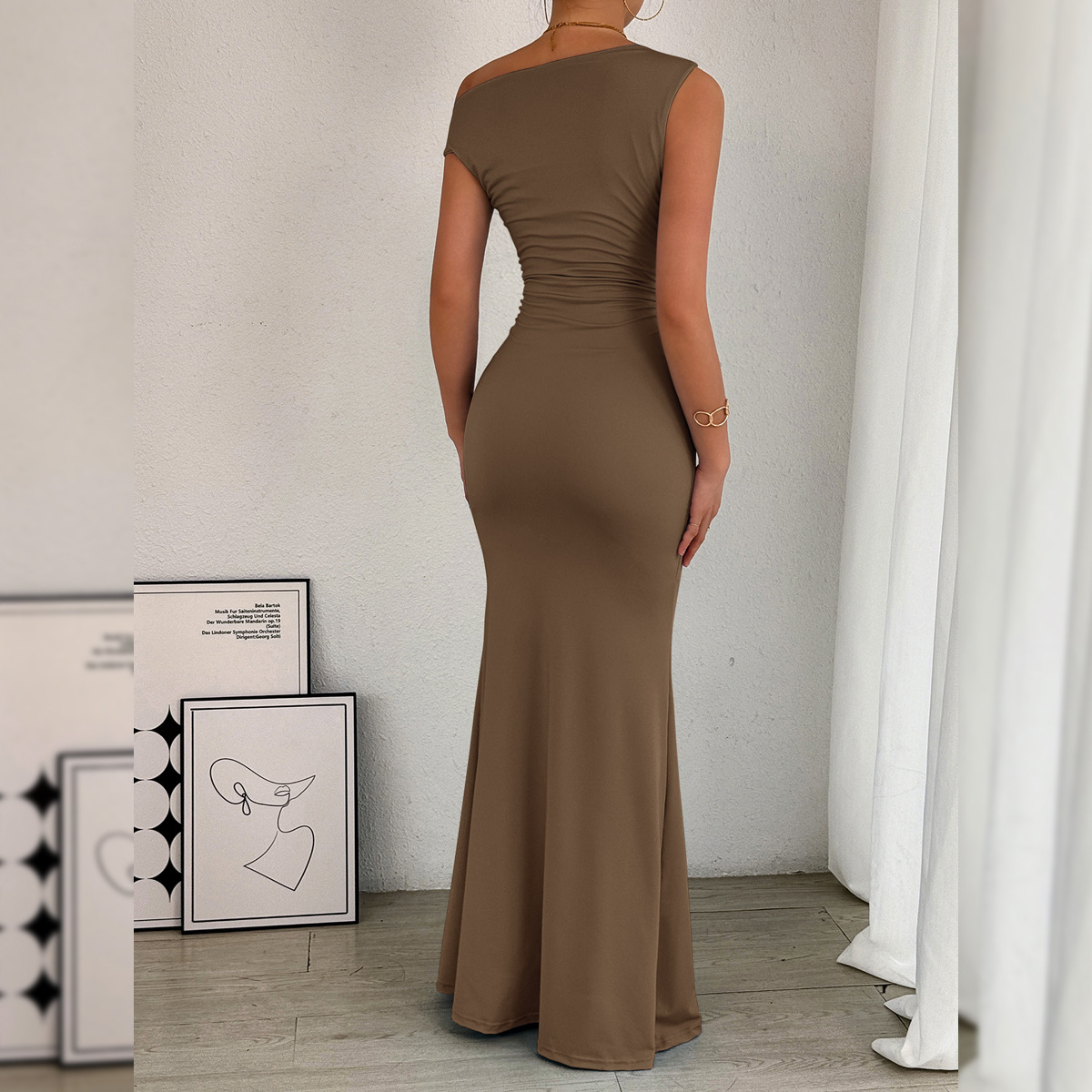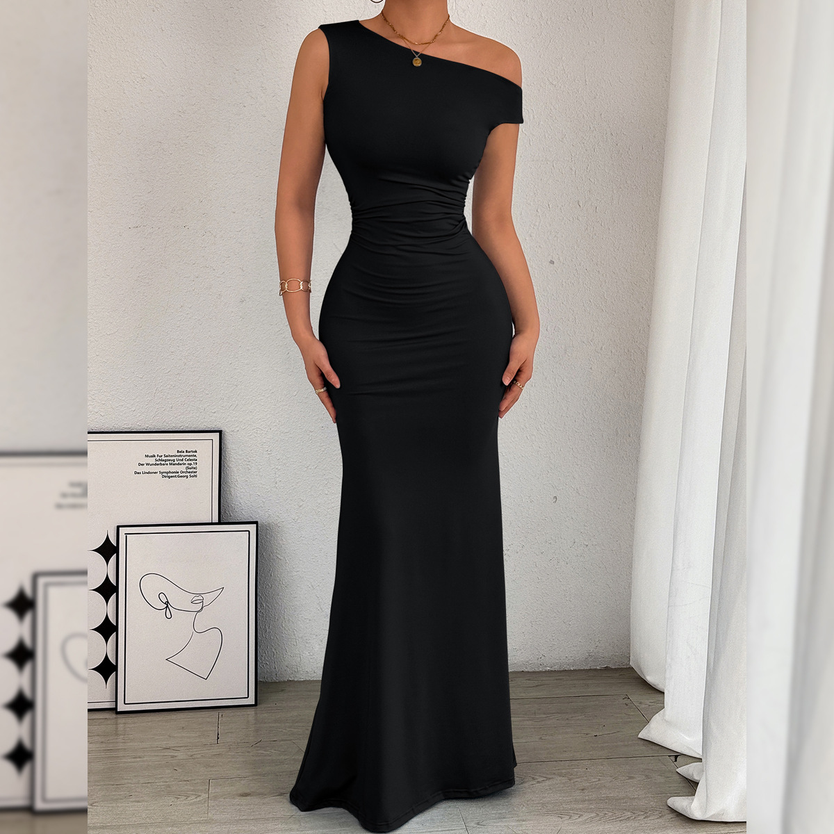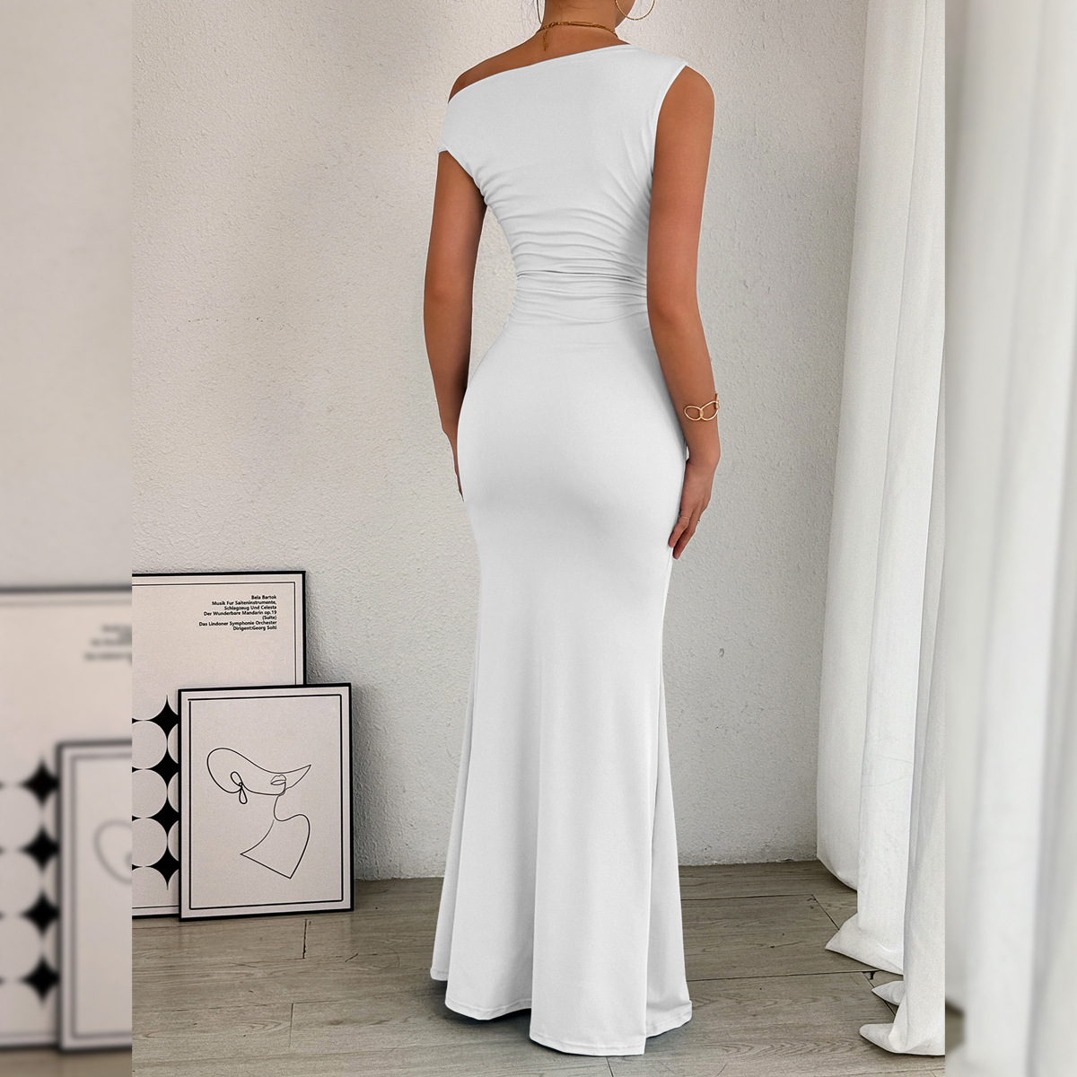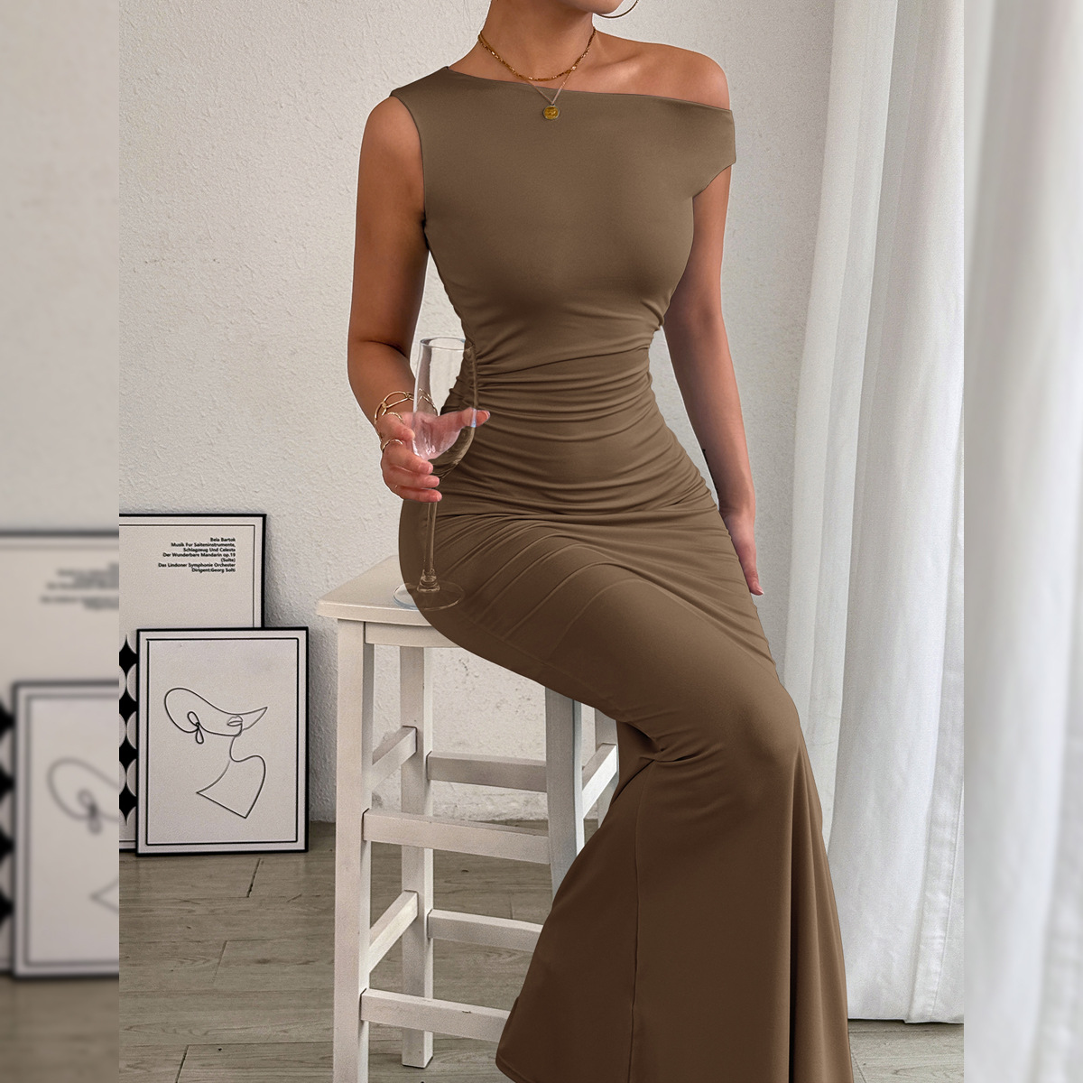 Hot Off-the-shoulder Waist Pleated Sleeveless Sexy Dress