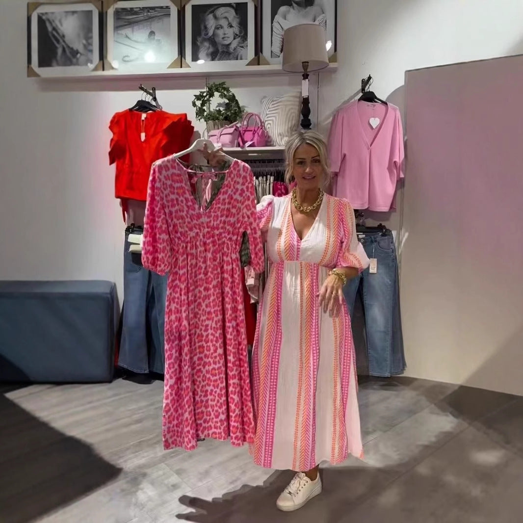Printed V-neck Plus Size Dress Women