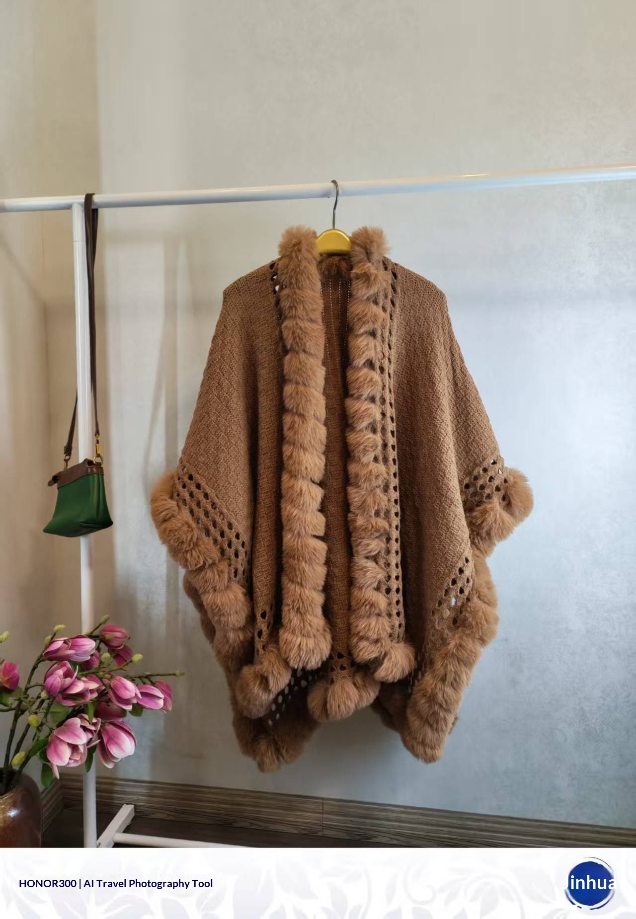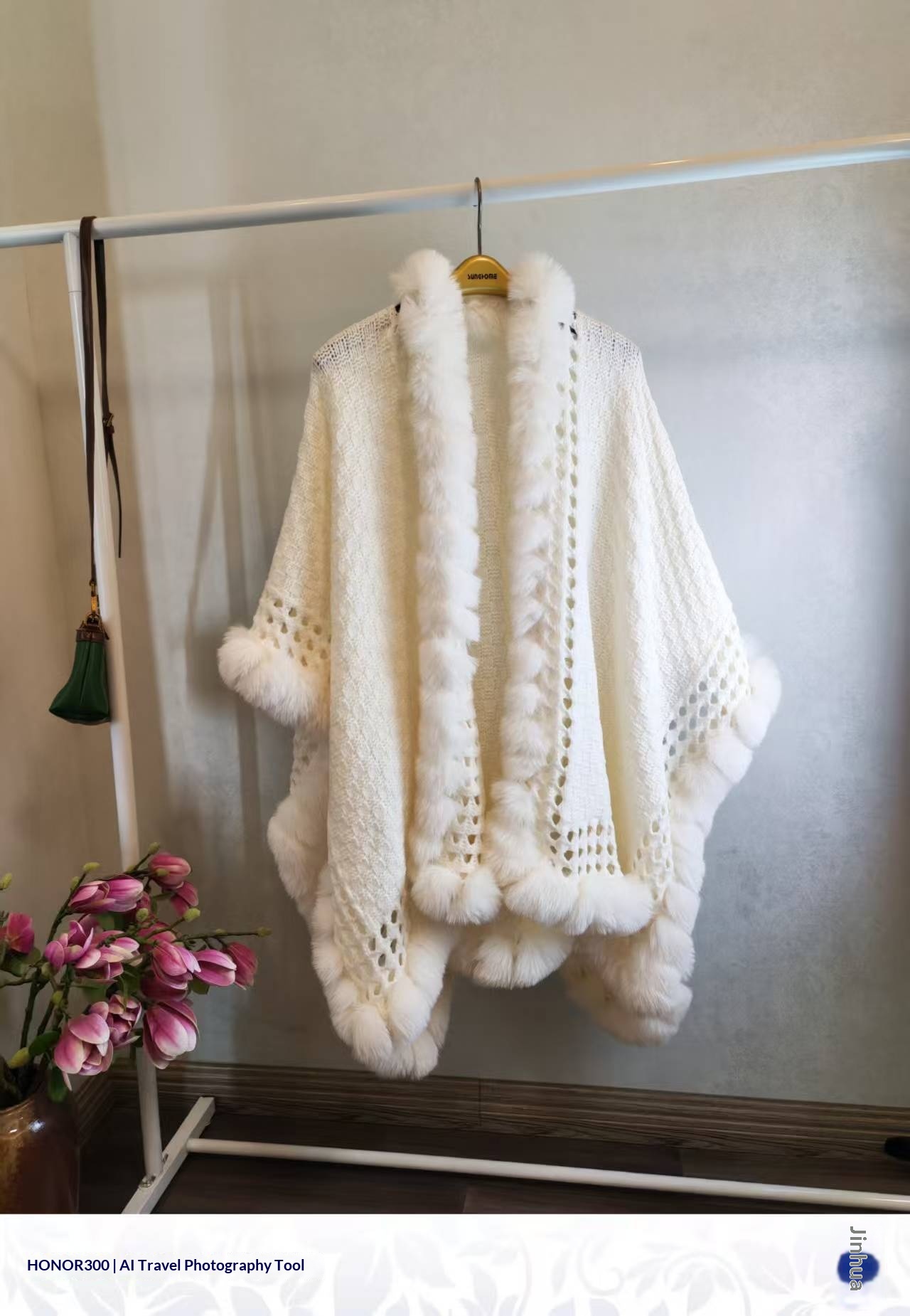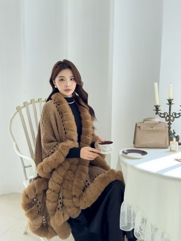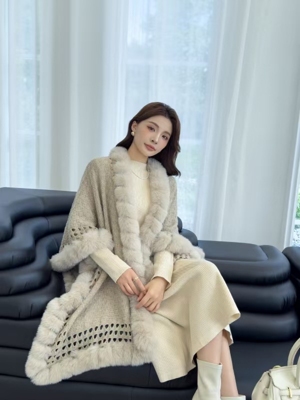 Solid-color Thickened Warm Womens Rabbit-fur Shawl