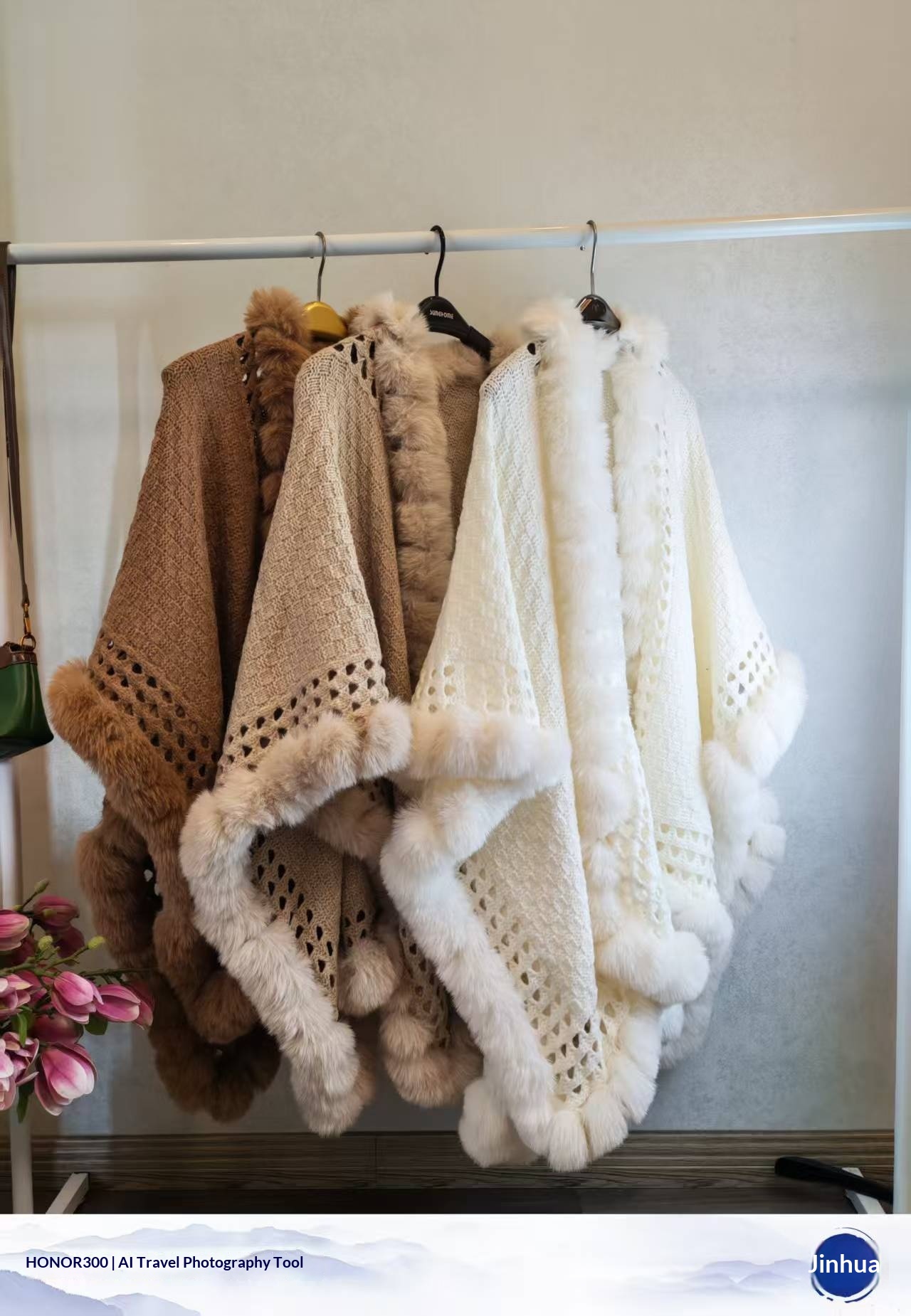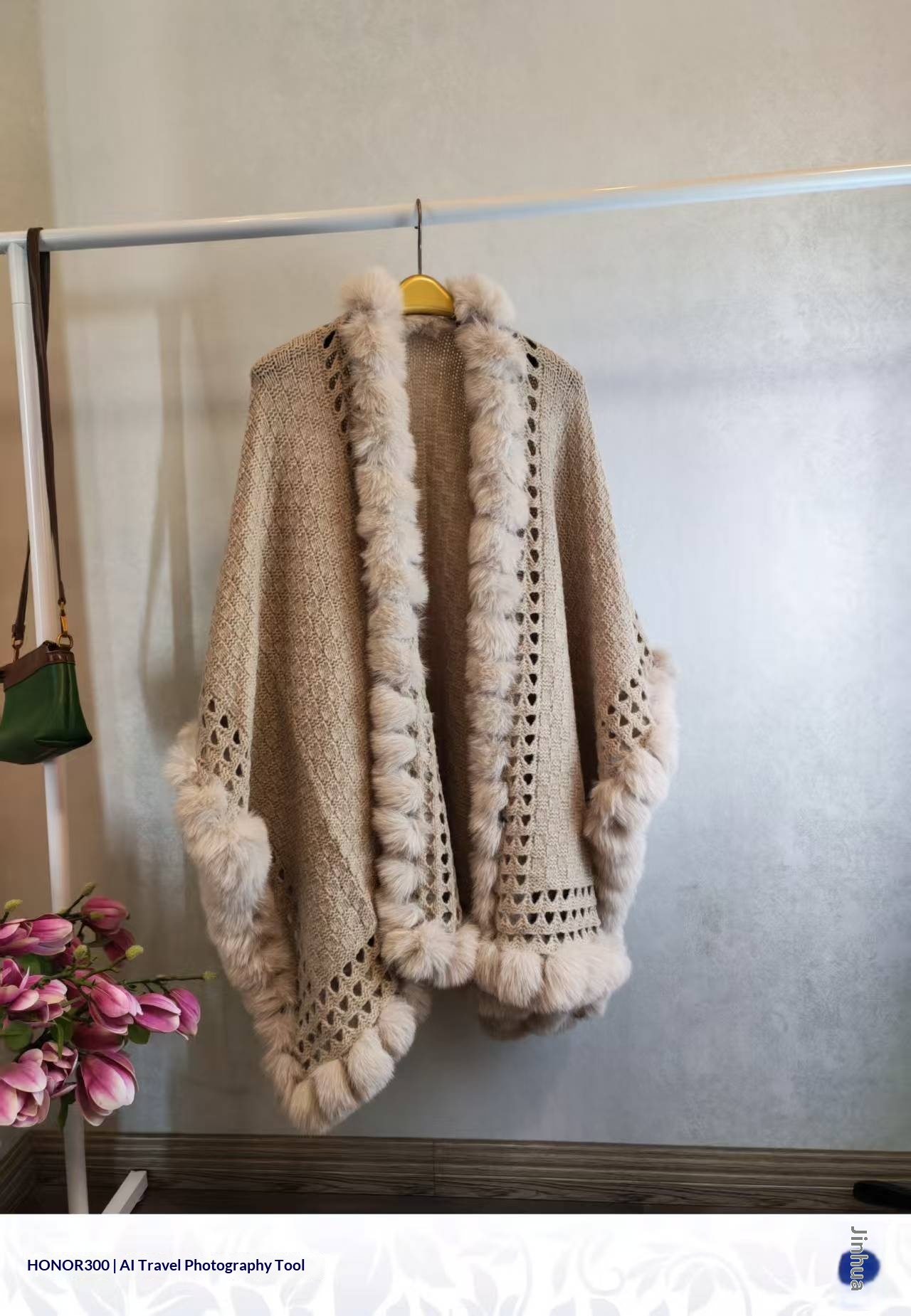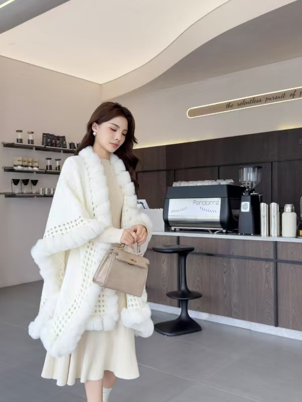 Solid-color Thickened Warm Womens Rabbit-fur Shawl