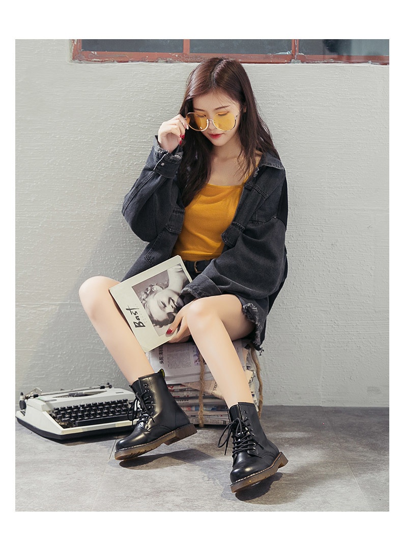 Stylish Round-toe Lace-up Chunky-soled Womens Casual All-match Dr Martens-style Boots