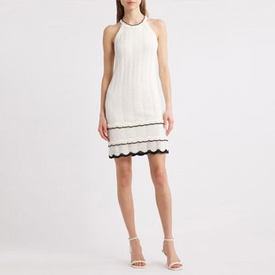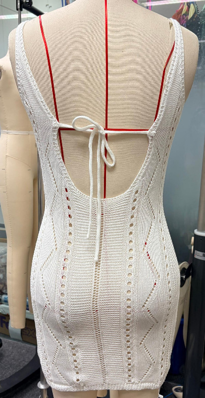 Womens Solid-Color Backless Hip-Hugging Knitted Hollow-Out Swimsuit Dress
