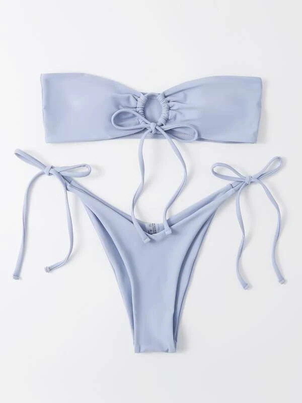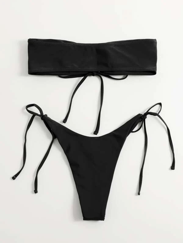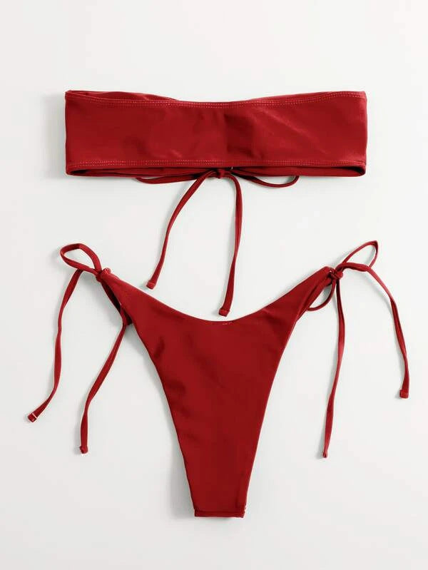Women's Split Low Waist No Strap Solid Color Tube Top Swimsuit
